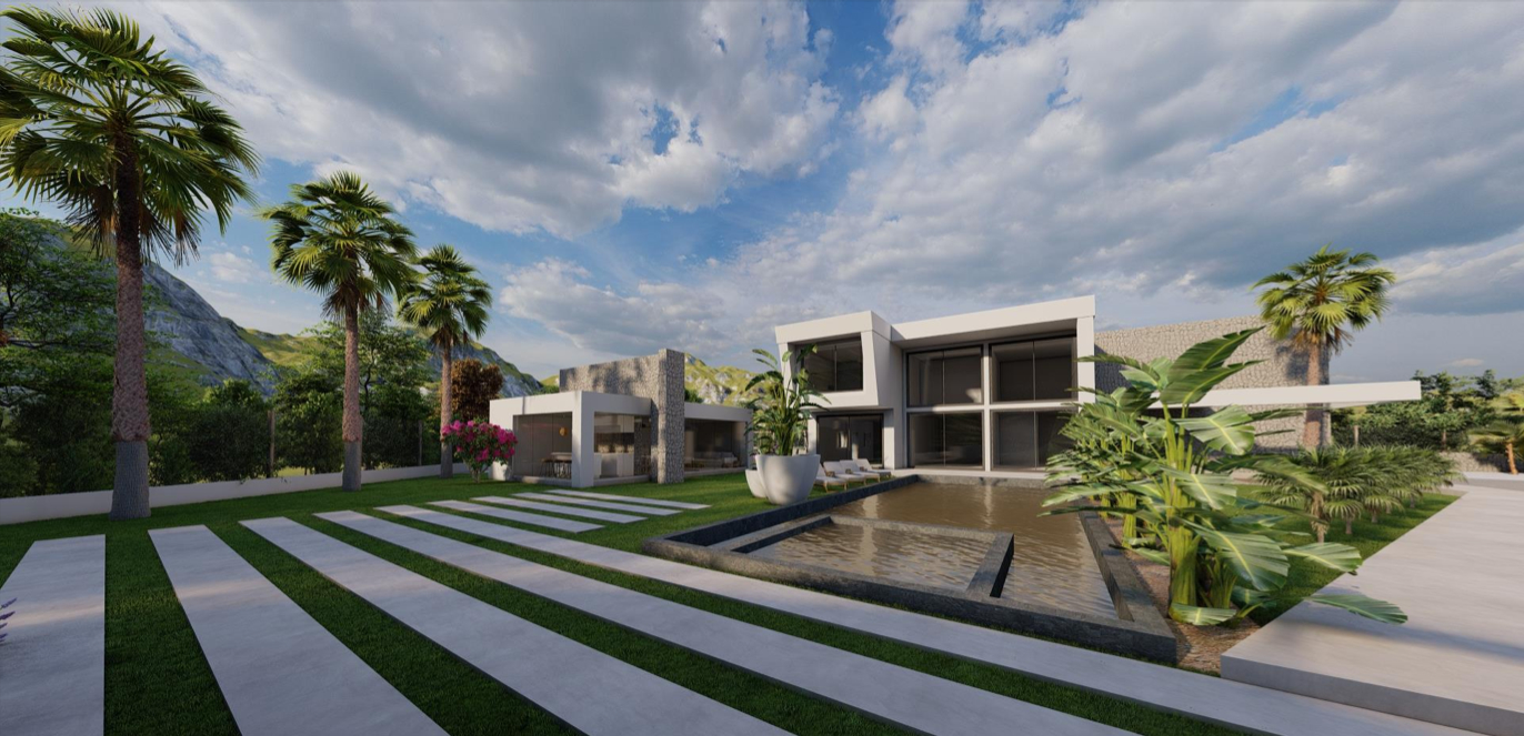 Este proyecto de chalet de nueva construcción está situado en una tranquila urbanización de Bunyola, en una parcela de aproximadamente 1937 m², rodeada de naturaleza y con impresionantes vistas a la Sierra de Tramuntana.